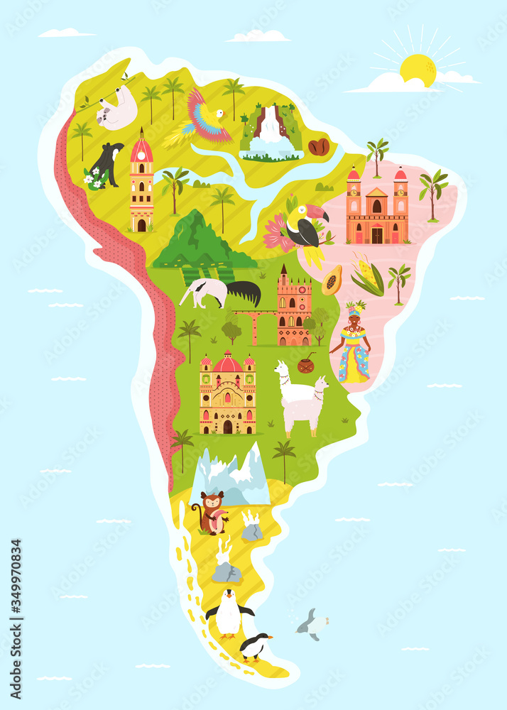 South America Map With Landmarks Map south america with famous natural landmarks Vector Image: Landmarks have a way of getting stuck in our or city and offer a reference point for knowledge-hungry travelers.In America, the Lincoln Memorial is considered by many to be the country . Compare The Market Australia has ranked the top 20 best road trips around the world, featuring two stretches of road in South Africa โ the Garden Route according to Google Maps. The higher the .